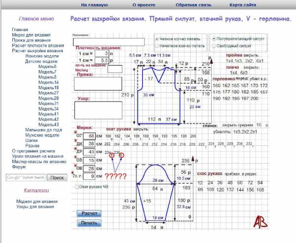 Теперь по выкройке. Горловина у вас в мерке указана - 2 см. Вы ошиблись? Попробуйте в графу петельной пробы ввести не 3(петли), а 3.0, с рядами делаем тоже самое. И нажмите перерасчет. Выкройка правильная, просто надо правильно ввести все мерки и правильно указать петельную пробу. Попробуйте все сначала, а потом еще раз нам всем покажете. Посмотрим, все ли будет правильно.