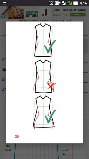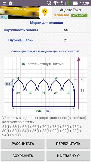 Очень рада,что появилось и мобильное приложение! Вот только одно но: начала делать расчет на Об=98 см, а расчет мне выдает на 46см (у меня получается 98/2=49см)