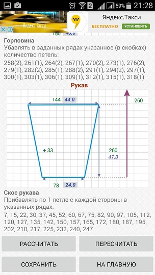 Новая выкройка в мобильном приложении "выкройки вязания Mnemosina".