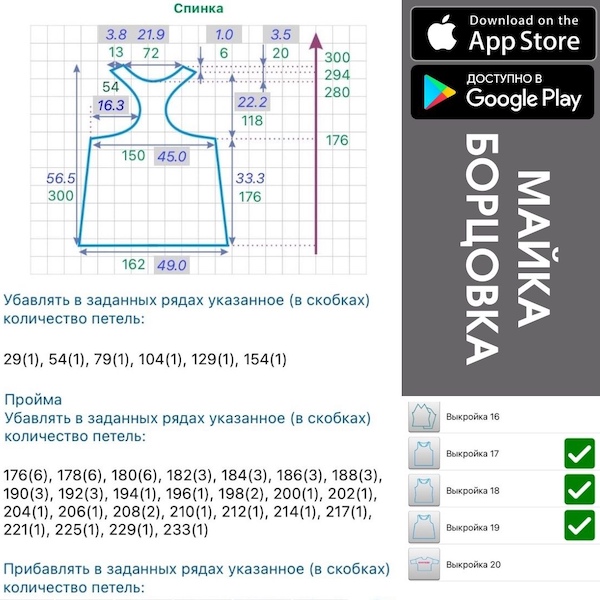 Прямая, приталенная и расширенная выкройки майки борцовки. 3 женских выкройки, 2 детских, 2 мужских.