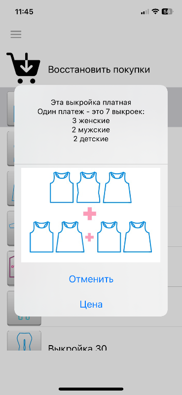 Здравствуйте! Я купила пакет выкроек в приложении для ios в покупках он есть, но когда нажимаешь на модель снова выскакивает предложение о покупке. Где я могу открыть купленные выкройки? Помогите, пожалуйста!