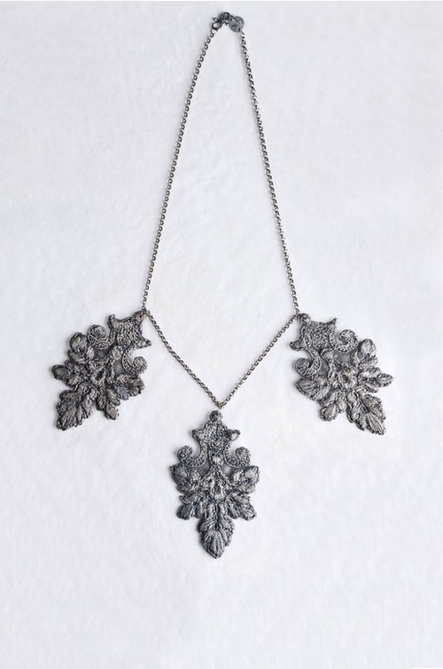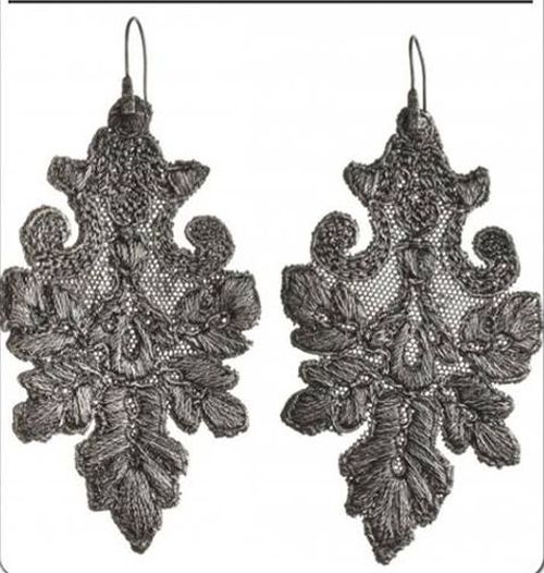 Эти фото- реклама знаменитого японского брэнда- подвески,серьги,браслеты и колье выполнены в технике игольчатого кружева и последующей вышивки...можно вырезать из готового гипюра красивые элементы и вышить их...или покрыть их плёнкой сусального золота, купленного в художественной лавке...