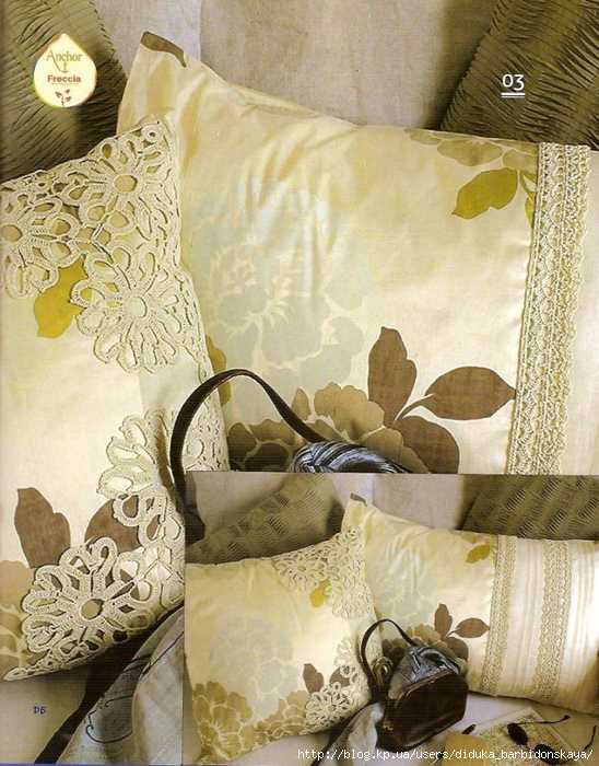 интересное оформление подушек :drinks: -цветы и кайма крючком