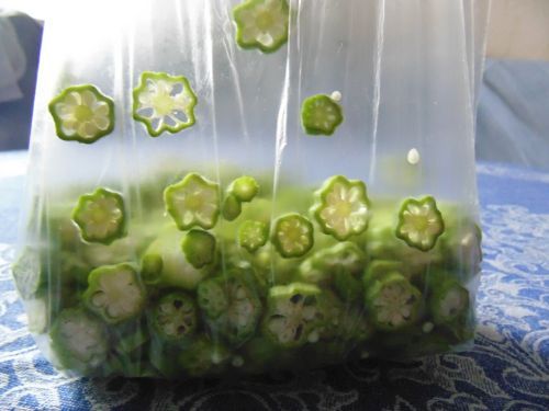 на фото- очередной пакет стручков бамии, готовый к заморозке.