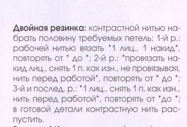Девочки, двойная резинка это когда вяжешь резинку 1 лицевая,1 изнаночная - 1 ряд. Во втором ряду - 1 лицевая, накид + изнаночная и т.д. В общем, в каждом ряду перед изнаночной делается накид, потом в каждом ряду провязываем накид + в этом ряду это уже будет не изнаночная, а лицевая, провязываем их вместе и т.д. Связали резинку нужной длины, внутри этой резинки будет пустота, можно вдеть пояс, резинку и т.д.