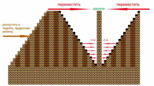 девочки! немогу сообразить как убавлять внутри широкой резинки в процессе вязания.От 8 петель