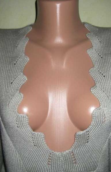 и ещё: с заказчицей облазили всЁ. просит у-образную горловину. показываю какие сеть и могут быть. стоит на своём: якобы по ходу убавления образуется одна дырочка в каждом втором ряду, так и гуськом дырочка поднимается от начала и до плевого шва, говорит цельновязанная. показала на 2ух фонтурах метод один, не нравится. может кто видел? помогите, пожалуйста