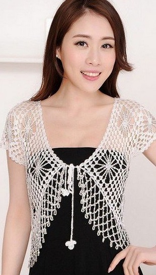 Девочки хочу связать Болеро на машине ,вот такое как на фото с круглыми полочками,рисунок придумала,обвязку тоже,вот только как связать круглые края?