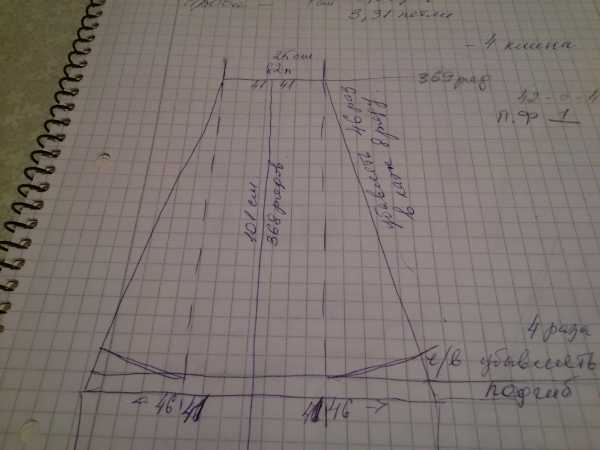 Эля, у меня на расширение клина вышло 46 петель с каждого края, надо было сделать примерно 2 см, получилось 8 рядов, вязала ч.в 4 прибавки в каждом 2 ряду, 12+12+12+10.
