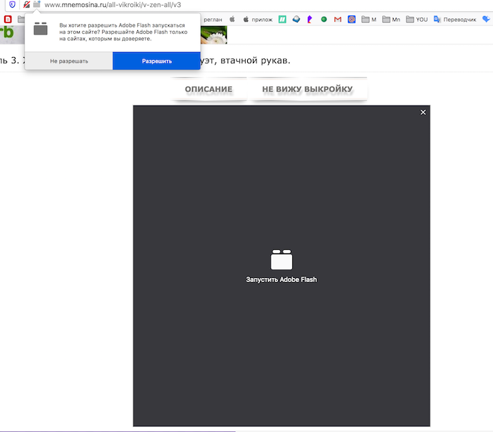 Здравствуйте! давно не вязала и не пользовалась выкройкой, и вот такое сообщение: "плагин adobe flash заблокирован" что предпринять, не подскажите? спасибо заранее!