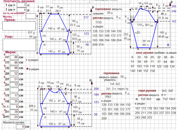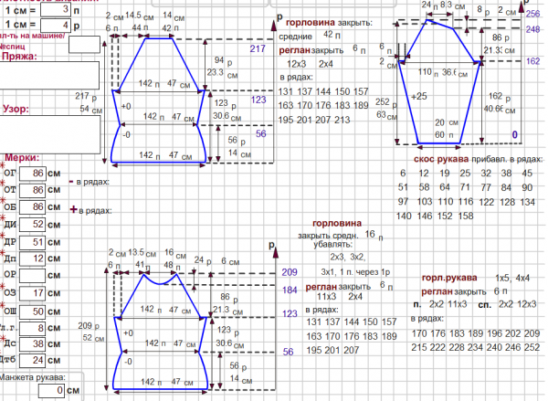 доброго времени суток... у меня вопрос по выкройке реглан №24... может я что то не так делаю, но уже вторая попытка связать реглан вызывает разочарование :( ... неудобно, что вырез горловины в расчете не учитывает планку и нельзя регулировать широкую часть рукава. Вариант "почти в облипку" с треском провалился, так как получившиеся рукава в районе подмышек что спереди, что сзади излишним объемом полотна образовали складки... вот и не знаю что и делать... может быть вы мне что то посоветуете, заранее благодарю... :vyaz: