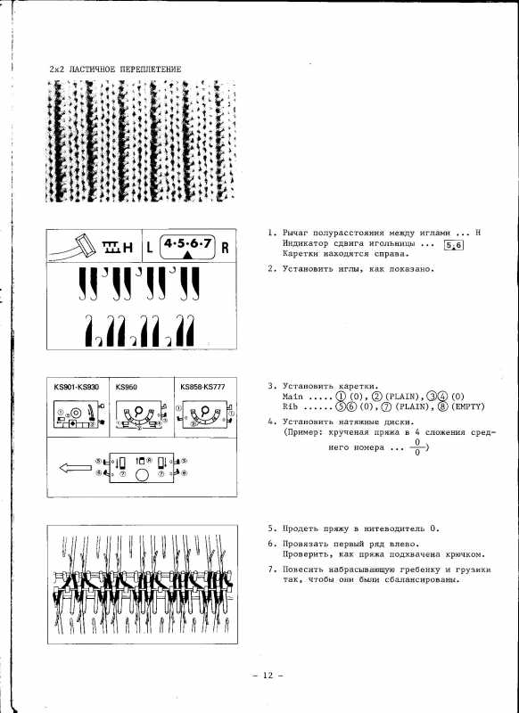 1. Для каждого вида вязания подбирается свое натяжение нитки в каретке.