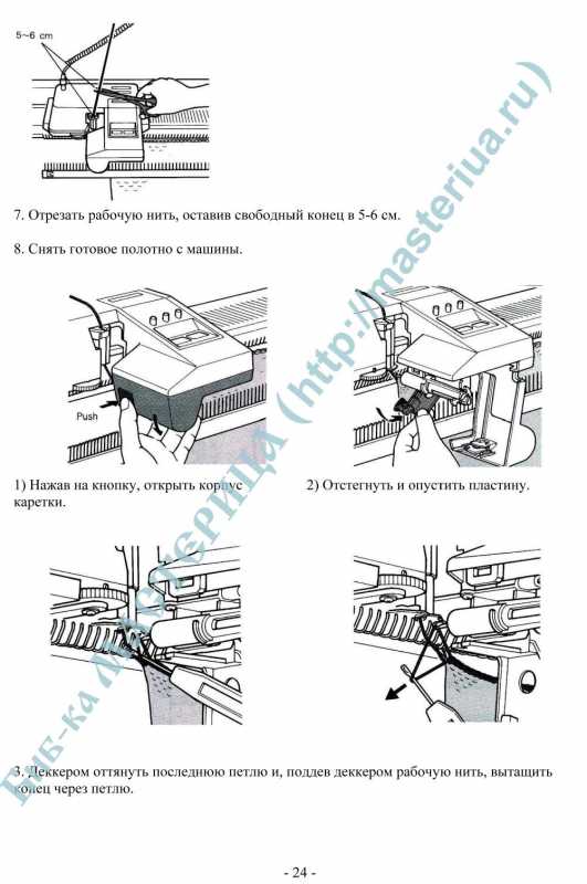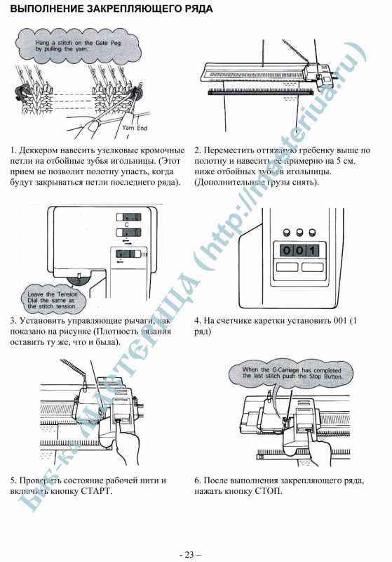нАТАШ ПРИВЕТ!Купила робот?.Только зашла в Мнемосину после отпуска- и тут ты!Пишу по памяти-закрывает петли с права налево,Без перфокарты ,крайние петельку зацепить за колок,рычажки поставить как для набора петель,счетчик 1 ряд и пуск,последнюю петлю вручную протянуть ,там надо открыть в роботе снизу крышечку и будет видна ниточка-ее и вытянуть через крайнюю петлю.Гдето сдесь была инструкция по 95 роботу,вот по ней я и смотрела как закрывать.