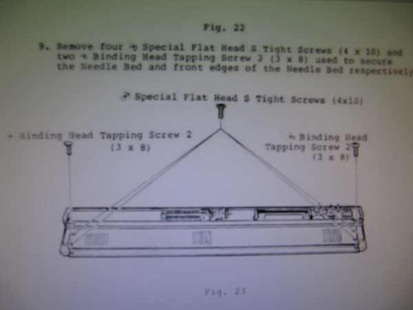 Девочки, помогите! При вязании образца с перфокартой заклинило каретку Бразер 893. Не срабатывала ручка для снятия каретки, не отключалась средняя клавиша выбора видов вязки. Муж снял регулировочный диск и открутил ручку каретки, для того чтобы снять крышку каретки, но ничего не выходило... Потом в порыве я раскрутила почти все, что есть в машинке и сняла-таки каретку.Т.к.муж не присутствовал при этом, считая безнадежным разбор и последующий сбор, то приведение в рабочее состояние машинки движется с трудом.Игольницу собрала, но иглы получается утоплеными,т.к. не пойму куда приспособить широкую планку с поролоном (во время разборки она неожиданно вывалилась откуда-то). И не пойму до конца как крепится легкая тонкая пластина (похожая на расческу с закругленными зубчиками с одной стороны ). Зубчики вставляю в отверстия другой планки, но часть этой "расчески" проваливается под иглами.Возможно, очень трудно понять изложение моей проблемы на бумаге, то как я описала. В нашем городе не удалось найти мастеров, было когда-то одно ателье и то давно кануло.Уже неделю , прийдя с работы делаю попытки собрать в рабочее состояние, но... Почитала форум, в отличие от меня, все девчонки такие продвинутые! Части машинки разложены , на днях прибывают внуки