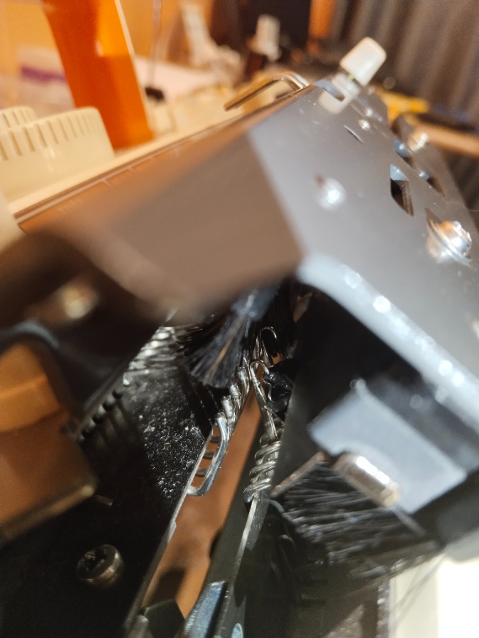 Спасибо за помощь и фотографии. Переставила фонтуры на стол заново, стало получше. Но у меня, если как следует привинтить мост к верхней каретке, он задирается вверх и в нижнюю вставляется уже чуть-чуть. Если ослабить винты крепления, то мост опускается как надо, но болтается. Не знаю на сколько это влияет на качество вязяния, но сегодня хоть смогла связать образец для определения разницы в плотности кареток. До этого все время каретка вылетала. В общем, похоже надо или свехру, там где винты крепления, что-то подсунуть, или снизу отгибать то место, куда мост вставляется. Попробую для начала что-то сверху подсунуть.