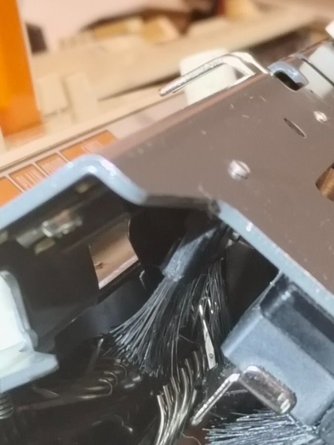 Привет. По фото ничего не понятно. Посмотрите слева есть шкала сдвига игл передней фонтуры, может поставлены не в шахматном порядке или клинья деформированы или передняя фонтура неправильно присоединена.