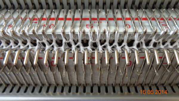 Иглы при вязании ажурной кареткой провязываются кордовым шнуром и ставятся в ЗНП