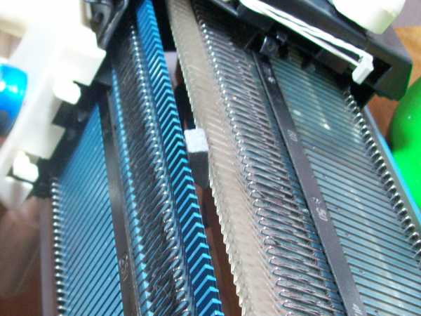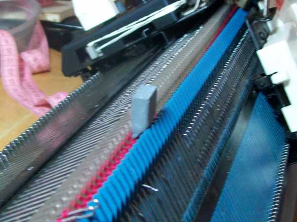 - здесь видно как иглы далеко от зубьев в середине машины и без вязания