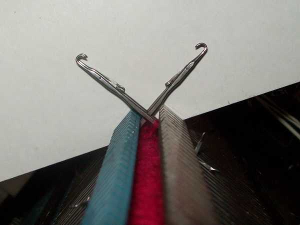 - а это контрольный ластик, который без вязания проходил между игольницами, а теперь с вязанием не хочет этого делать