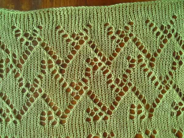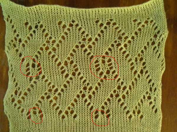 У меня на всех ажурных п/к набивка идет сразу после технологического ряда, а сверху 2 пустых, когда соединишь вроде все нормально. А третий ряд да теперь вижу. А для рапорта я брала другой участок, может поэтому и не получилось?