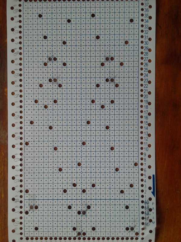 Ира, строка(под номером 3) неправильная, у вас там три дырочки пробитые, в этом рисунке в строке только четные пробивки(либо 2, либо 4-е)