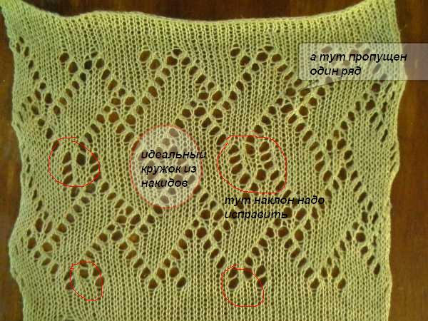 вот добавила фото, где выделила идеальный кружок из накидов, где добавить строку между раппортами и исправить наклон: