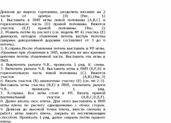 По-моему, начиная с седьмого пункта фото не соответствует описанию. Мне кажется, что Е и Ф нужно довязывать до плечевого среза, потом переходить к А, Б, опять довязывать до плечевого среза, закрывать петли плечевых срезов и потом уже полностью вязать воротник.