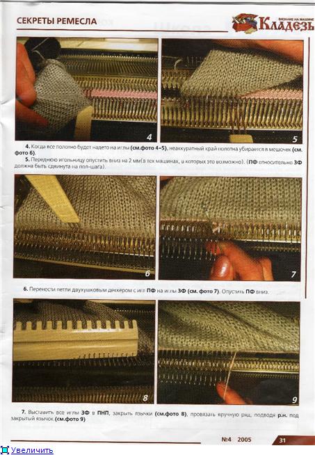 нет Анют,до кеттеля мне еще как до пекина,а на машине просто очень,выдвигаешь иглы в прп,кладешь на переднюю игольницу двух фонтурную гребенку,прижимаешь ее грузами,навешиваешь одну сторону кармана на нее навешиваешь горловину,на нее навешиваешь вторую половину кармана,убираешь гребенкуи грузы,и провязываешь каждую иголку вручную до зрп,затем закрываешь через колок петлеуловителем.может непонятно обьяснила,спрашивайте.а еще в любо дело есть мастер класс.