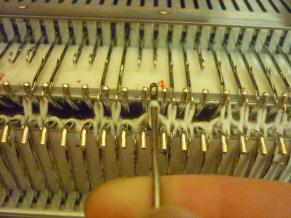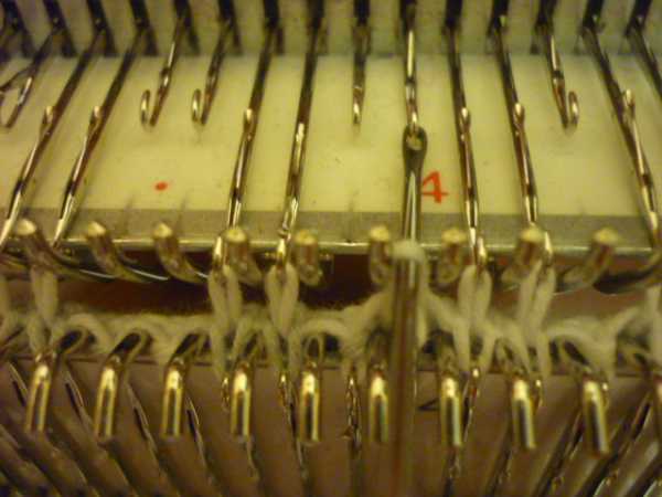 каретки настроила на круговое вязание, плотность 7. 6рядов.