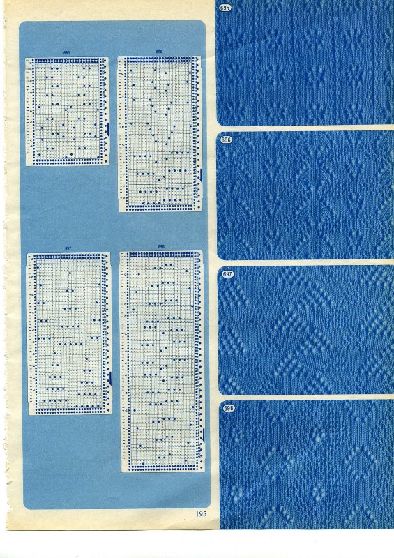 Добрый день. Подскажите, пожалуйста, где посмотреть какой узор\рисунок получится по стандартным п/к бразера, который идет с машинкой? Больше интересует ажурные п/к. Хочу связать шарф ажурный, никак не могу понять что в итоге получится. Благодарю