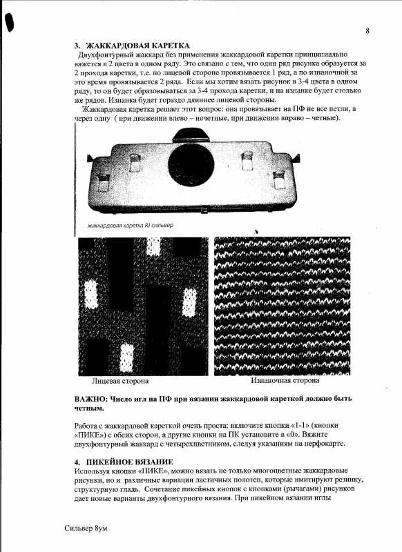 Жаккардовая каретка только для ПИ,а для ЗИ идет плечо в комплекте со сменщиком цвета,Но ДФ жаккард можно вязать обычной кареткой без протяжек на изнанке,только в 2 цвета и нить менять в ручную:dry: