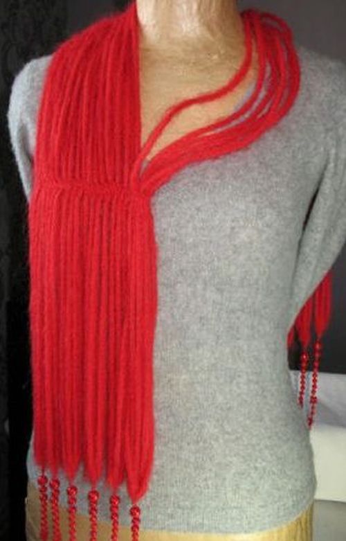 При поперечном вязании юбок, рукавов или полочек жакета интересно смотрится бахрома, связанная вивингом какой-либо фактурной нитью( букле , стрейч и пр.)