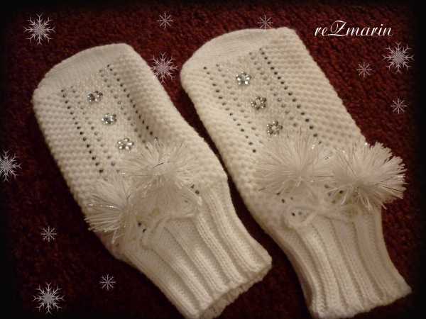 варежки с воланами, связаны в 2 нити из пряжи аэлита в круговую