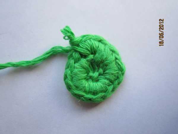 4р. - 3 вп для подъема, 1ссн в первую петлю, 14ссн, прибавка (18)