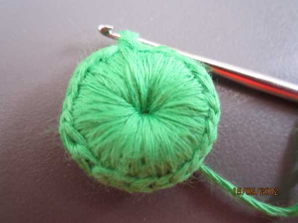 6р. - 3 вп для подъема, 1ссн в первую петлю, 18ссн, прибавка (22)