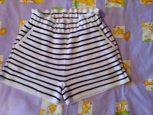 ниточку дополнительную не добавляю.Вяжу из белорусской полушерсти,шорты в полоску-из хлопка