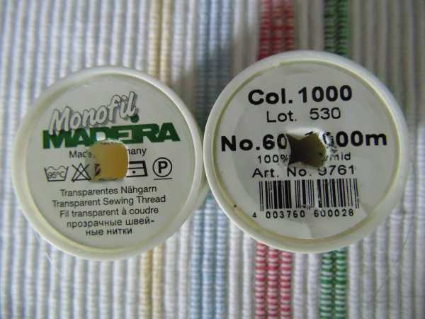 Я пробовала эту китайскую мононить, но она- для шитья, для потайных ,подрубочных строчек...Для вязания слишком "короткая" намотка- никогда не знаешь, когда катушка закончится, т.к. производитель не указывает конкретную длину намотки