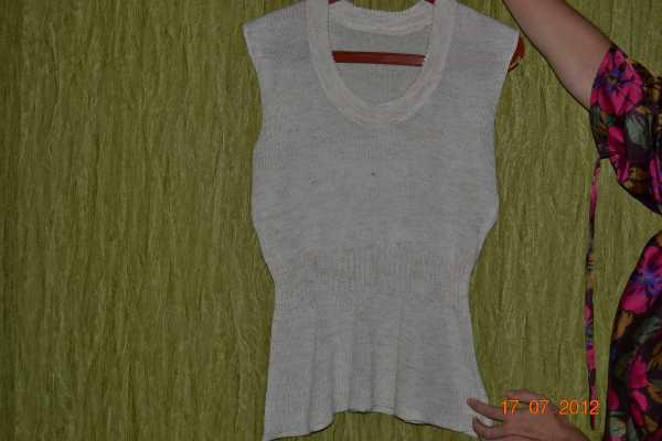 я решила просто связать планку и вручную пришить ее- сделала,обвязала крючком столбиками с накидом пройму и низ маечки.