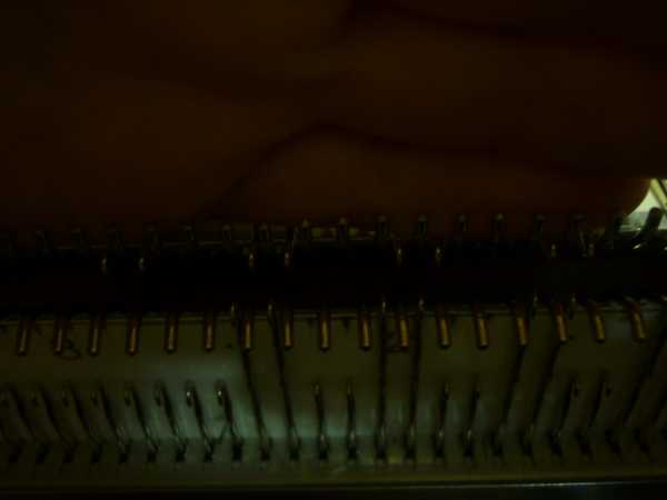 И начинаеться или клинит каретку или вяжет но очень туго! Или вяжет с браком . :cry: :???: И так два месяца! Помучаюсь , сниму и вяжу только на З.И. Обманной резинкой 2*1 с подгибом. Но сегодня уже и З.И. с браком начала вязать :cry: Это видно на фото с большым полотном.