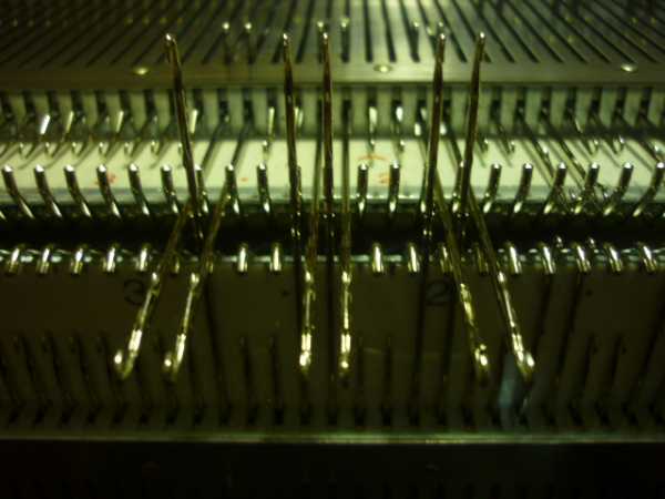 Лена, большими буквами на форуме писать нельзя! Теперь по делу: Лена я вчера ответила на электронку, я видела резинку и объяснила причину почему так может происходить. Ответа я не получила. Я спрашивала: фонтуры на машине вы устанавливали сами? Прижимную планку смотрели? И т.д. Попытайтесь загрузить фото и машины, и прижимной планки. Попробуйте поднять переднюю фонтуру в рабочее положение и выдвиньте иглу на задней фонтуре. Выдвинутая игла должна упереться в колок на передней фонтуре. Так проверить всю фонтуру. Скорее всего у вас не правильно установлены фонтуры относительно друг друга. 6 игл - это минимум того что вы потеряли, так можно все иглы поломать. Покажите где и какие рычаги у вас установлены на каретке, сместили ли фонтуры из положения Р в положении Н. Это всё очень важно! Мы не сможем вам помочь без вашей помощи и детальнейшего описания процесса вязания.
