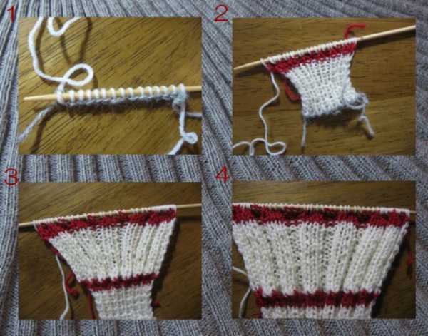3.Повторить пункт первый. И после подгиба одновременно на иглы надеть и первый ярус. Вязать 25 рядов опять снять на бросовую нить и повторить четыре раза.