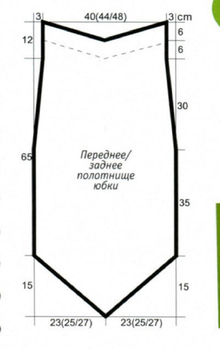1. АА1 — длина юбки = 65 см. 65 х 3 (Пг) = 195 петель.