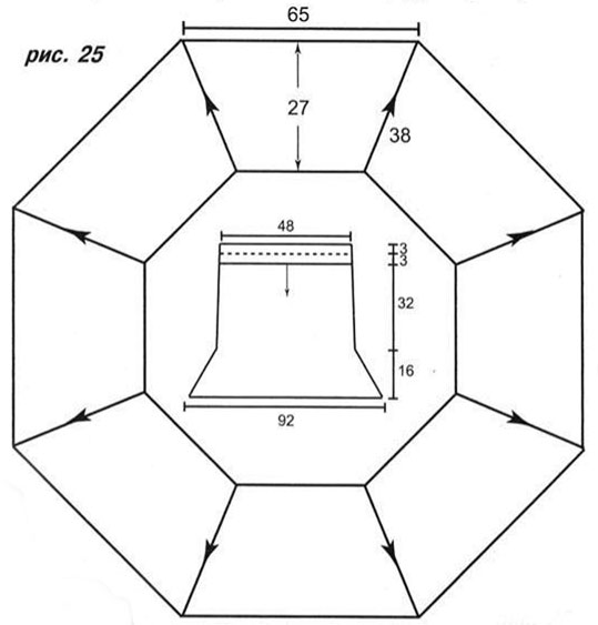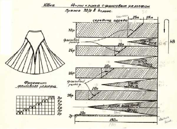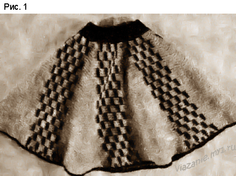Поперечно-вязаная юбка гофре: Для вязания юбки гофре число клиньев берется больше, а сами клинья уже (рис. 4).