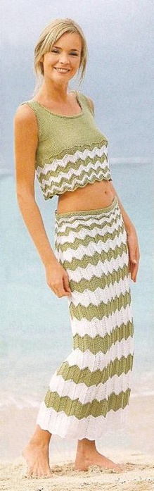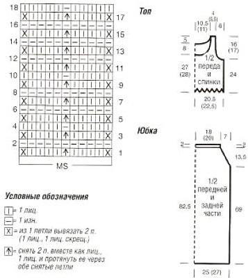 Поперечно-вязаная юбка гофре: схема