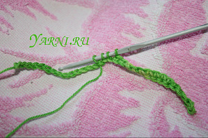 3. Поворачиваем и переходим на сл. ряд двумя воздушными петлями. Теперь столбики без накида мы будем вязать не обычные, а за дальнюю половинку косички:
