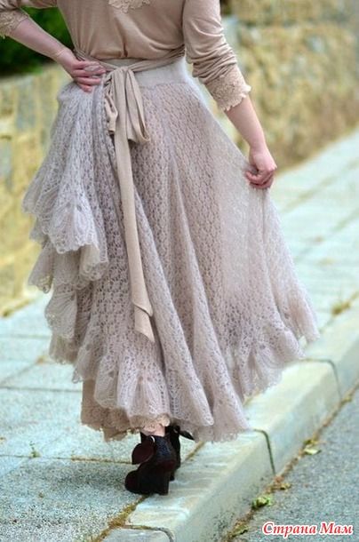 Формы юбки кажутся примитивными, но её можно разнообразить. Не обязательно выполнять вязку чередуя лицевые и изнаночные ряды. Можно выполнить ажурную вставку. Причём использовать несколько вариантов. Например, вывязывание косы снизу до пояса. Если кто имел опыт в вязании подобной красоты буду признательна если поделитесь схемой!)