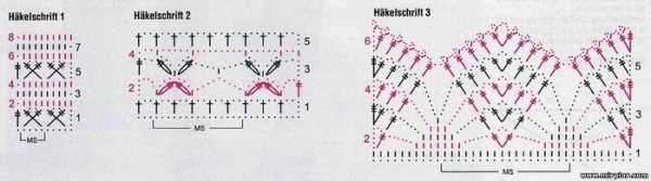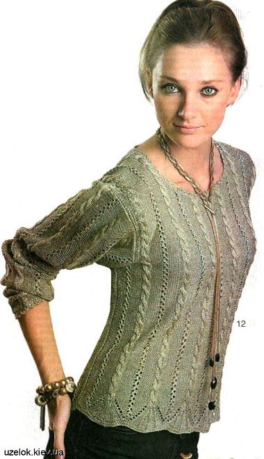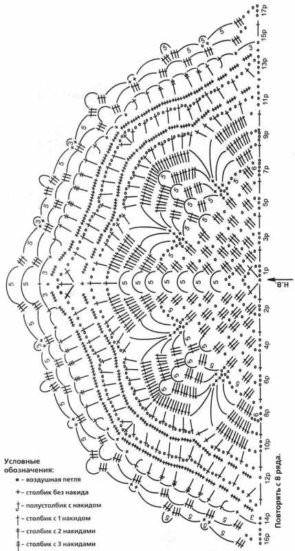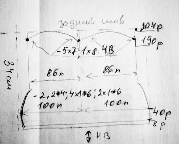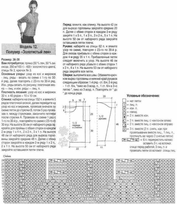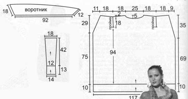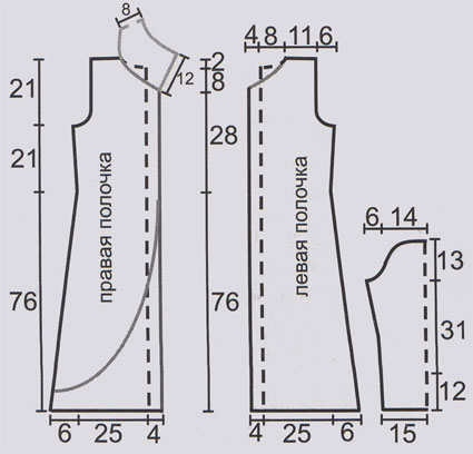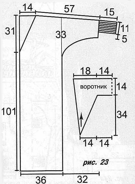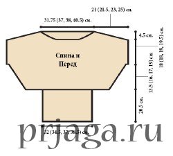 Левая полочка: вяжите симметрично правой полочке и по схеме спинки на указанной части.