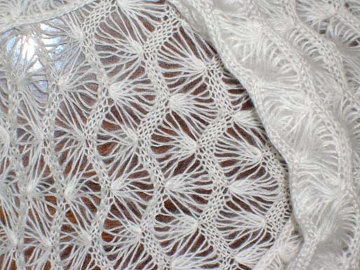Вязал из турецкой ангоры, в одну нитку, на 10 плотности, на всю ширину, разбор игл 3 в работе 7 в заднем не рабочем положении, частичным вязанием. Уходит 1 упаковка (5 мотков) на 2 палантина.