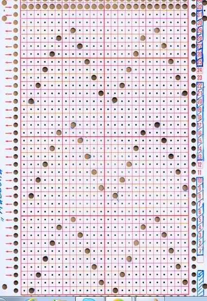 В рамочку отмечают, когда сложный ажур - это холостой ход каретки. А эти п/к для простого ажура. А выше были для жаккарда.