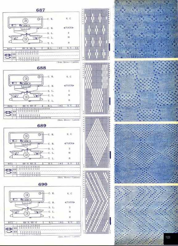 Дорогие дамы!Думаю,что вам поможет каталог для робот-каретки при вязании жатых жаккардов - в каталоге много об"емных узоров и перфокарты на 24 иглы.Вот ссылка для скачивания rusfolder.com/35107685 Желаю успехов! :poliv: